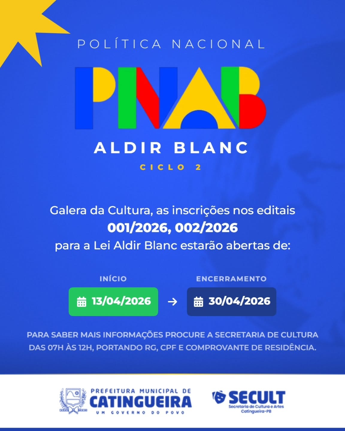 | 13/04/2026 - EDITAL 001 - PNAB-PREMIO DE PRODUCAO-CULTURAL-2026 | Ver |