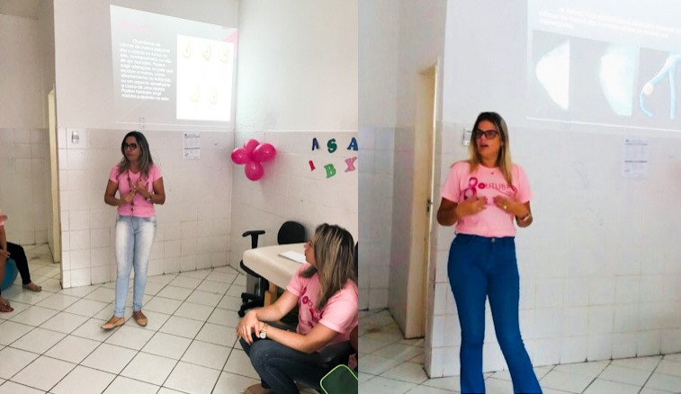 Os profissionais da Atenção Básica e equipe do NASF (Núcleo de Apoio à Saúde da Família) falaram da importância da prevenção e diagnóstico precoce do câncer de mama.