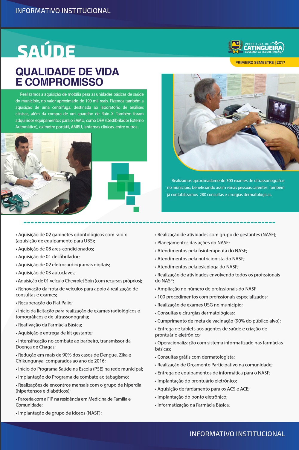 “Já fizemos muito nestes setes meses de gestão. Logo no início, o prefeito implantou a insalubridade nos salários dos agentes comunitários de saúde e de endemias. Estes mesmos agentes também já receberam fardamento e material de trabalho. Implantamos o prontuário eletrônico para os profissionais da atenção básica. Realizamos a entrega de computadores e tablets para que possa ser agilizado o atendimento destes profissionais. Estamos implantando o tele saúde, onde o médico irá tirar dúvidas com médicos especialistas através de um número já colocado nas unidades básicas de saúde, evitando assim que os pacientes possam ser encaminhados para uma atenção especializada. Estamos instalando um eletrocardiograma e outros equipamentos modernos necessários para o atendimento. Se precisar, o usuário será estabilizado dentro da unidade de saúde e posteriormente ser atendido pelo serviço de urgência para que ele possa ser removido dentro da sua necessidade. A ideia da nossa atenção básica é que ela seja a porta de entrada dos serviços de saúde.” disse.